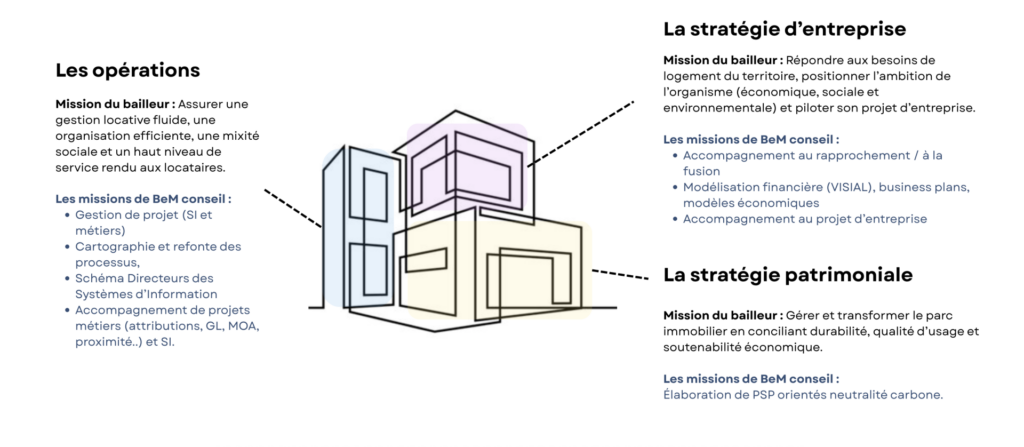 Intervenant notamment dans le secteur du logement social, BEM Conseil développe une expertise spécifique tout en restant ouvert à d’autres environnements exigeants.